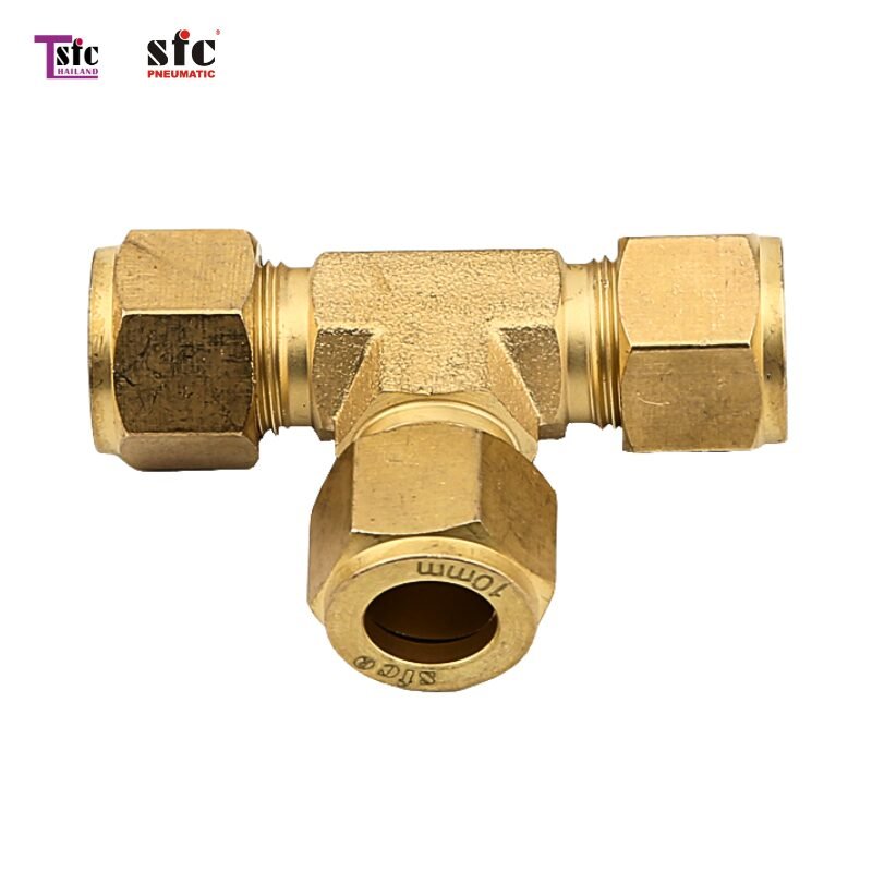 / ข้อต่อทองเหลืองตัวที เสียบสายสามทางตาไก่ 64