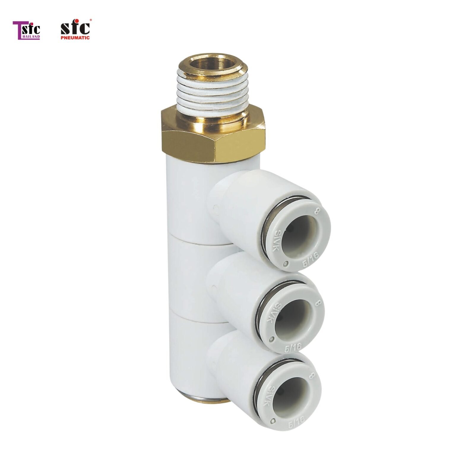 ฟิตติ้งข้องอ 90 องศา เสียบสายสามทาง เกลียวนอก KQ2VT