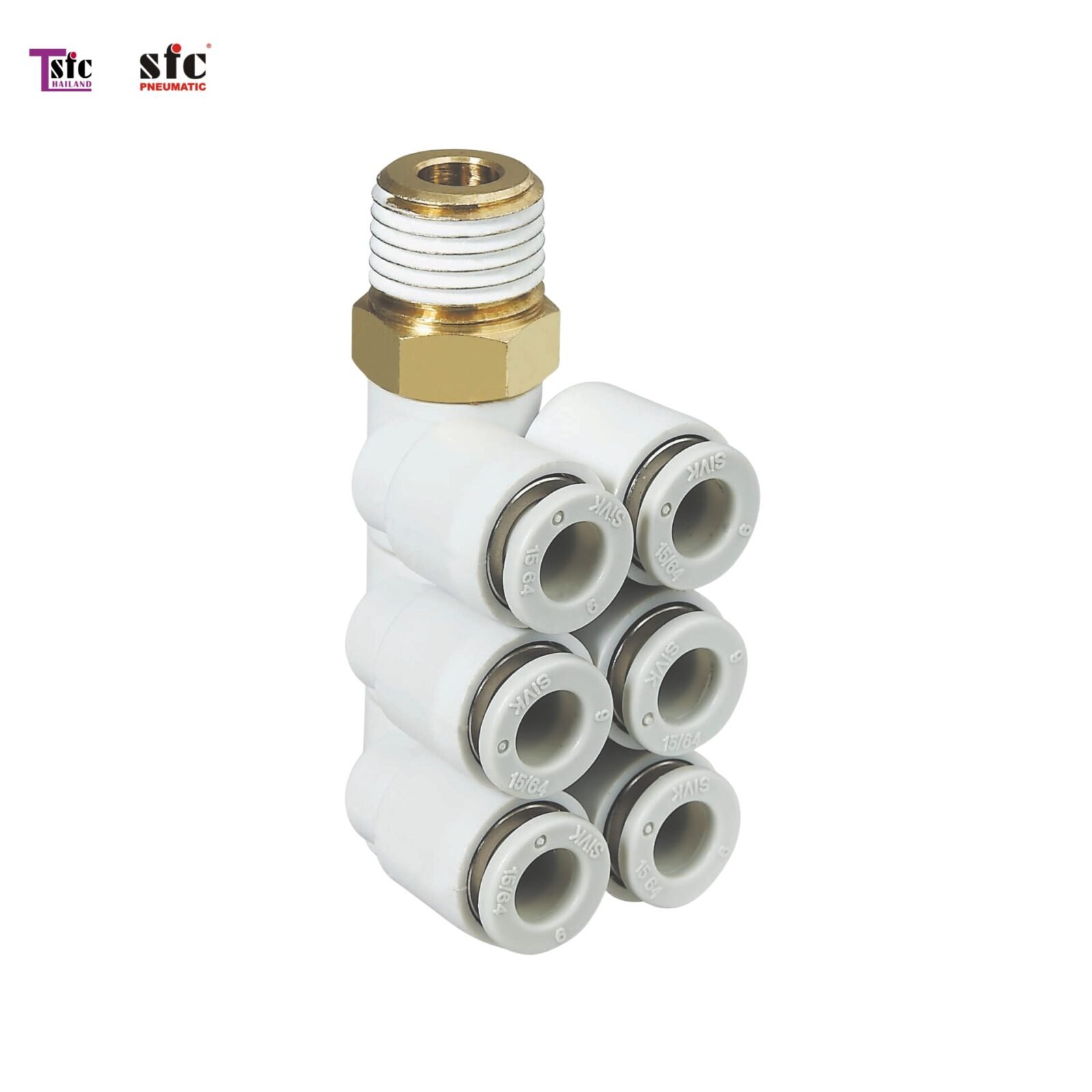ฟิตติ้งข้องอ 90 องศา เสียบสายหกทาง เกลียวนอก KQ2ZT