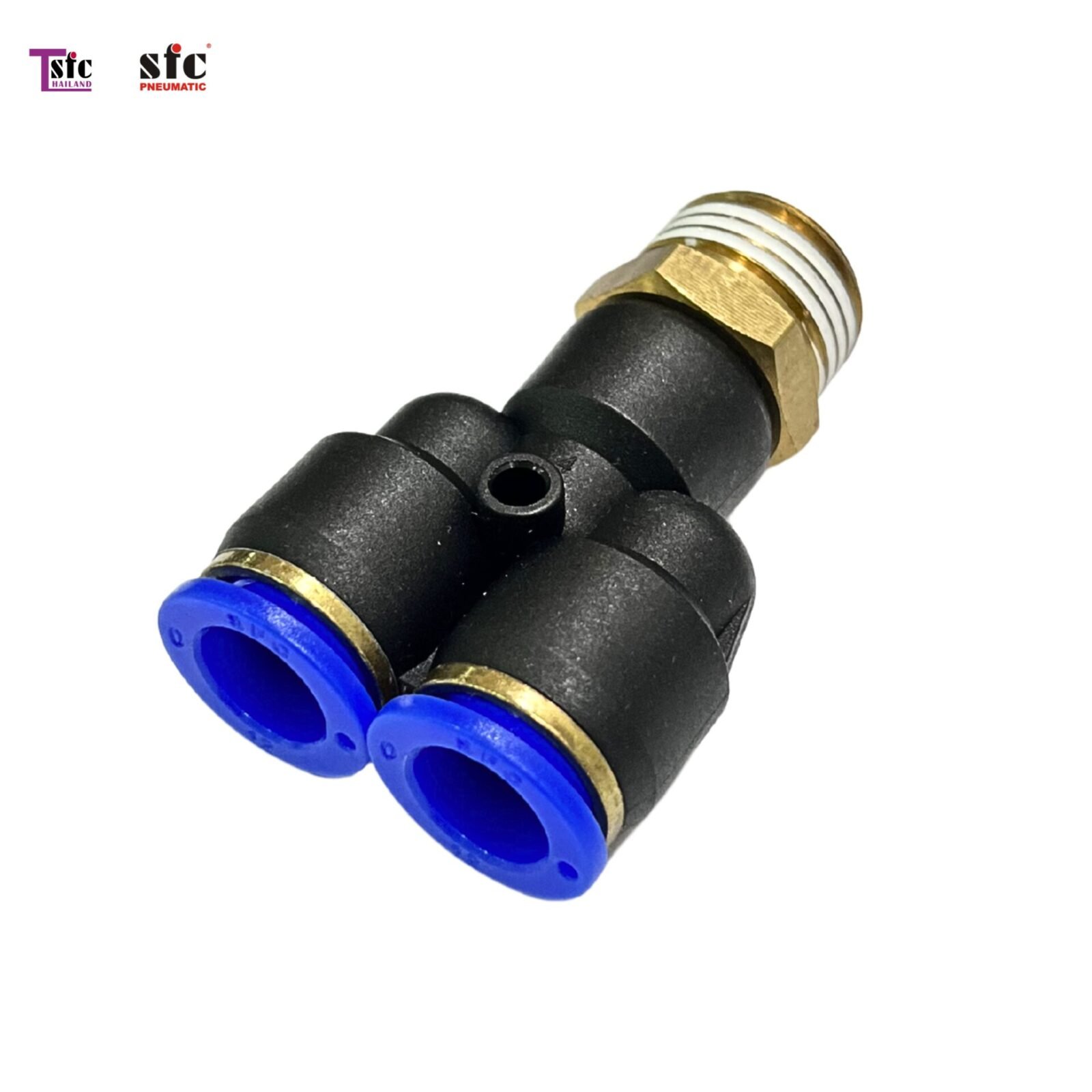 ฟิตติ้งสามทางตัววาย เสียบสาย เกลียวล่าง SPX