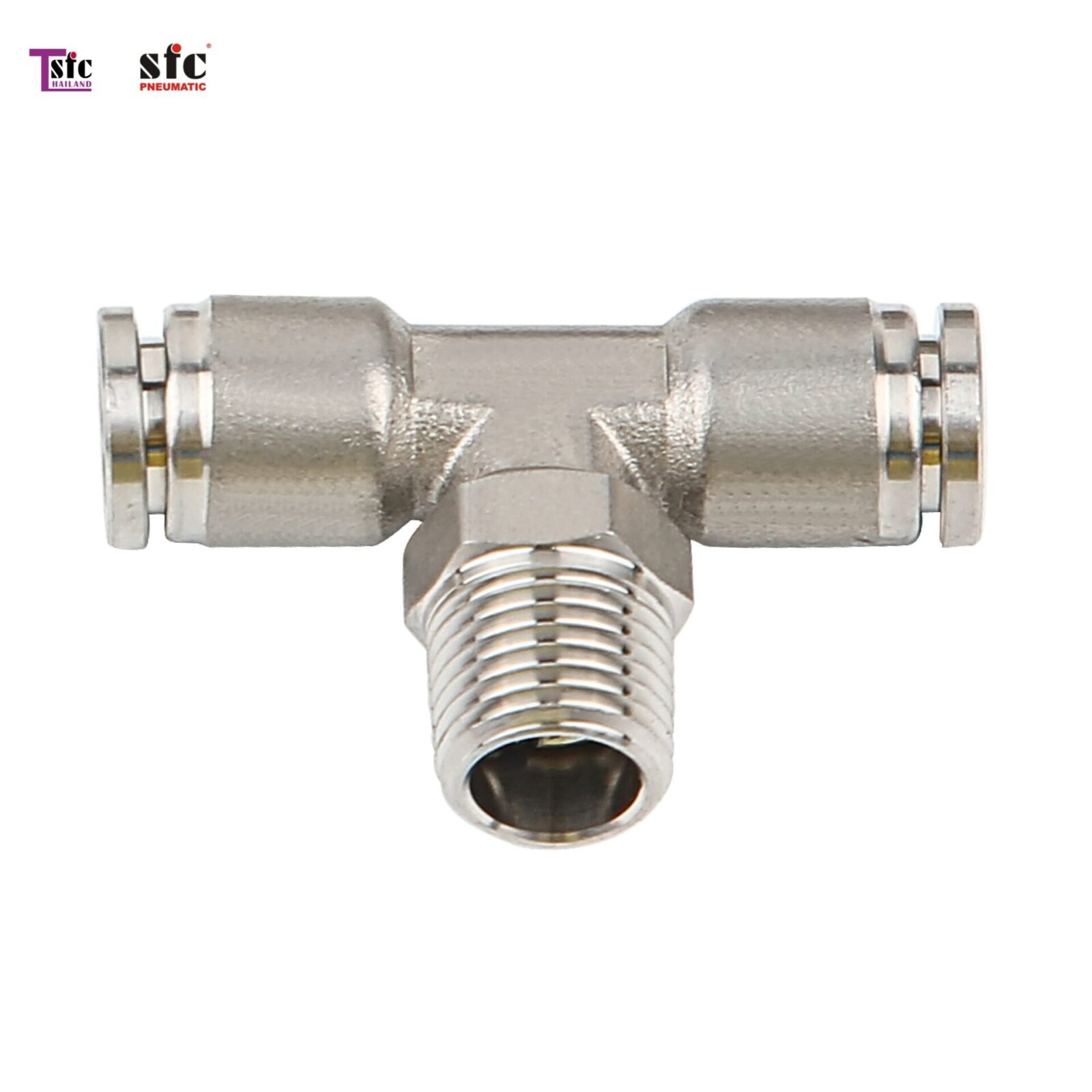 ฟิตติ้งสแตนเลสตัวที เสียบสายสองทาง เกลียวนอก STB