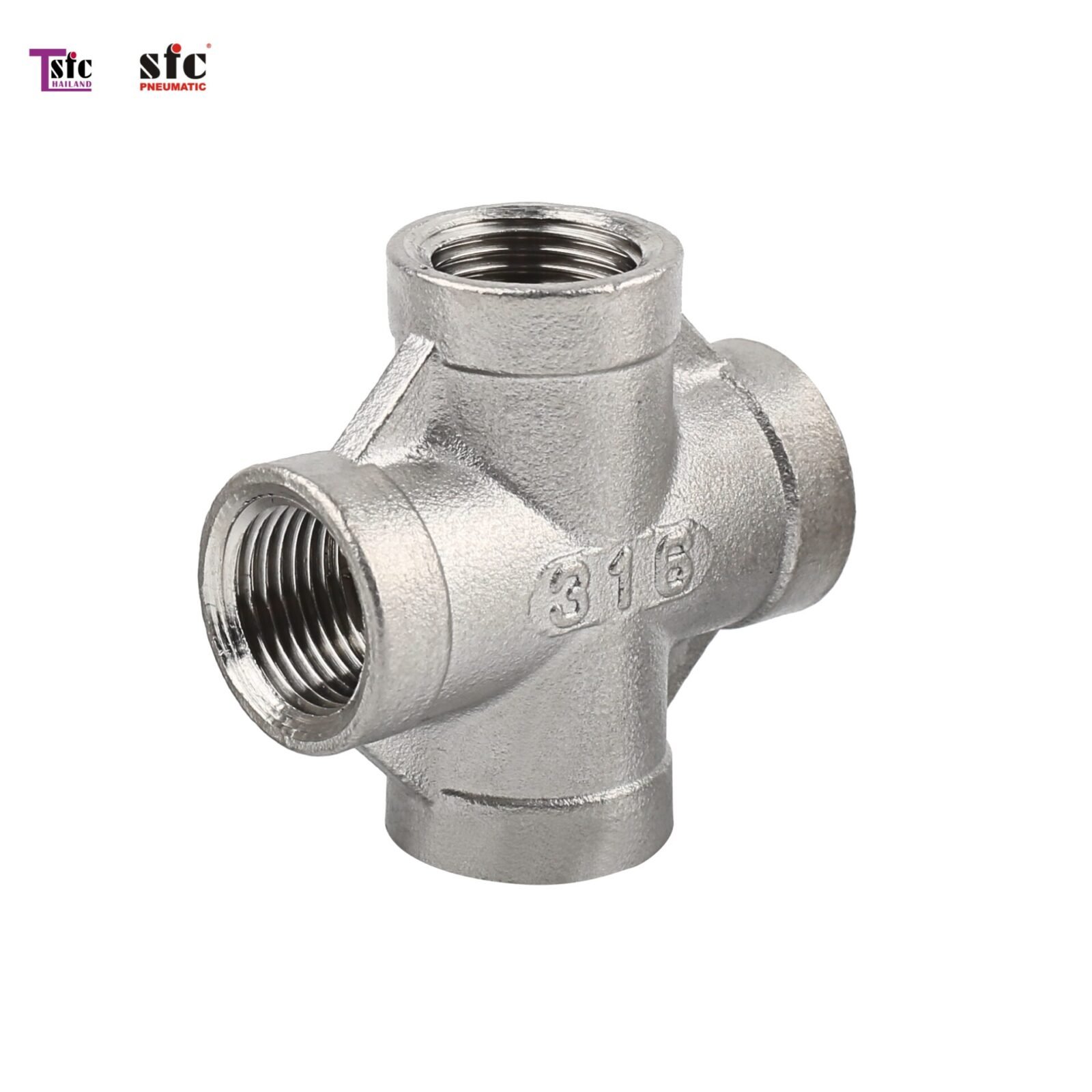 ฟิตติ้งสแตนเลส สี่ทางเกลียวใน ST3950