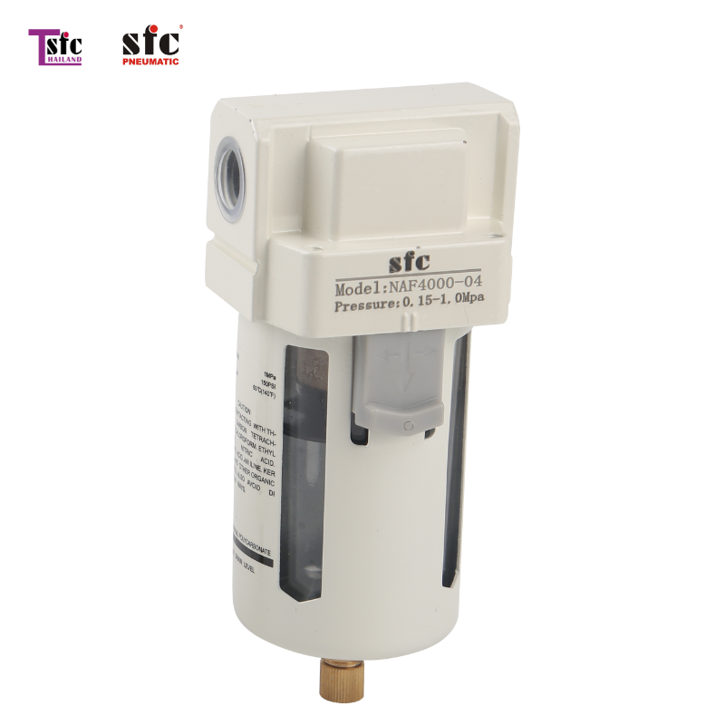 | NAF2000-02 | PT1/4 | 750 L/min | 0~10.2kgf/cm² | 40um | -5~55°C | Manual drain |