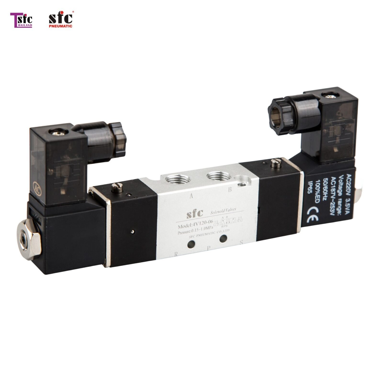 | 4V120-06 | PT1/8 | 7mm² | -5-50°C | 0.67 | 3VA | 5/3 way Internally piloted acting type Double electrical |