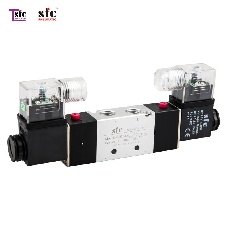 | 4V330C-08 | PT1/4 | 7mm² | -5-50°C | 0.67 | 3VA | 5/3 way Internally piloted acting type Double electrical |